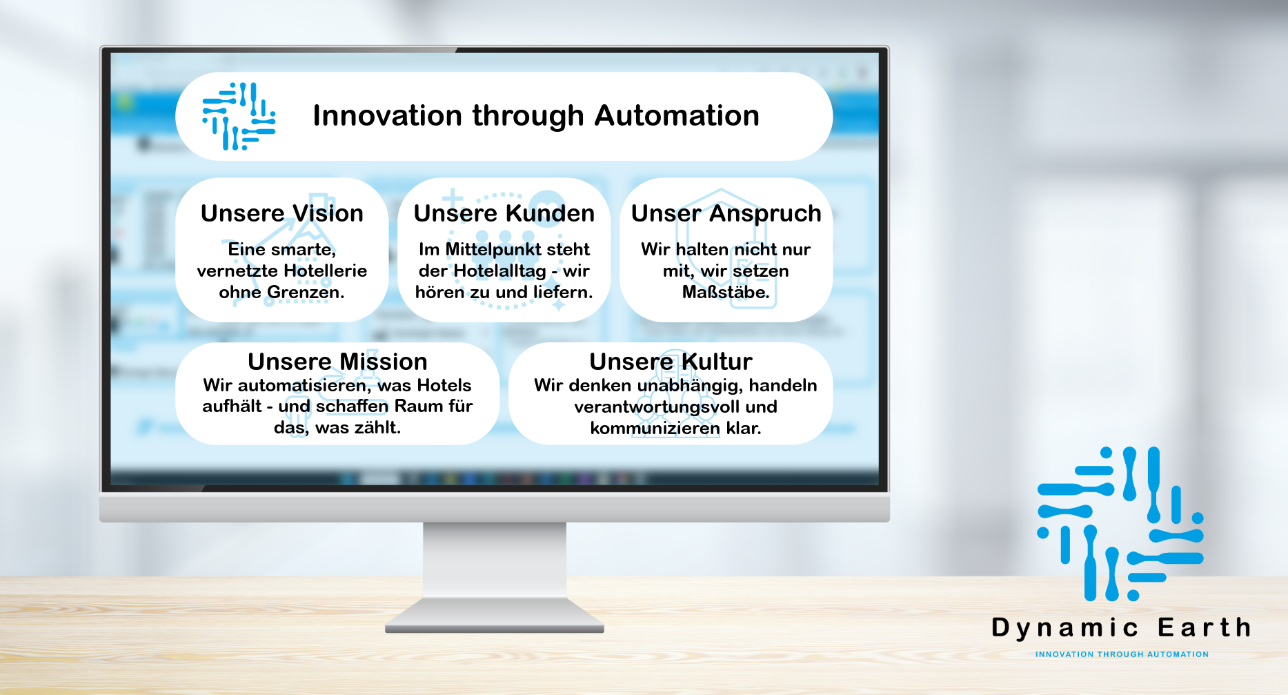 Dynamic Earth ist ein junges Start-Up für Softwareentwicklung. Wir wollen die Nummer 1 Lösung bei ERP und PM-Systemen für die Hotelbranche werden. Dynamic Earth wird eine Cloudbasierte Software, welche alle in einem Hotel benötigten Softwaremodule vereint, darunter beispielsweise das Buchungs- und Reservierungssystem, sowie das Personalmanagementsystem. Dabei sind wir ein Vorreiter im Branchenspezifischen Denken im Hinblick auf die Hotellerie.